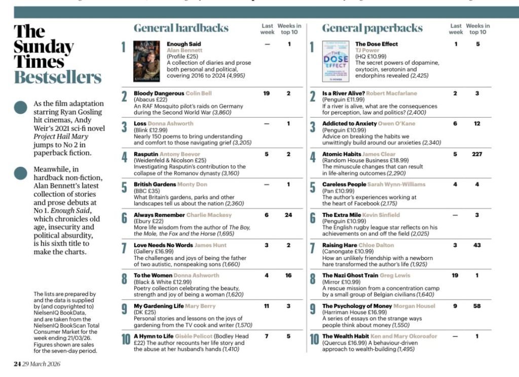 And now – NOW! – it has made the Sunday Times bestseller list.